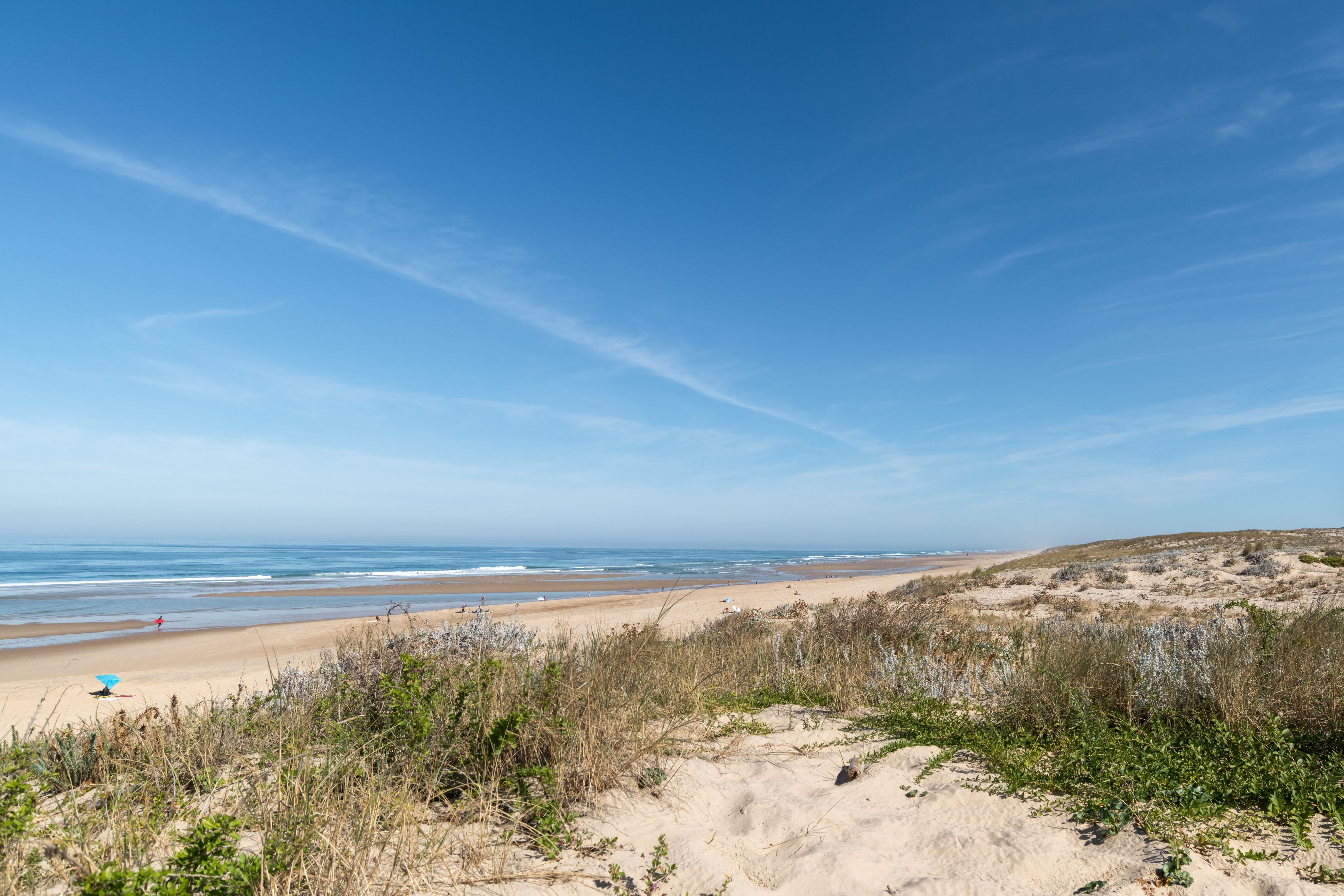 While there are a few campsites set within the forests that back the beach, there’s nothing but dunes and the crashing surf rolling in from the Atlantic – oh, and a naturist site just to the north.