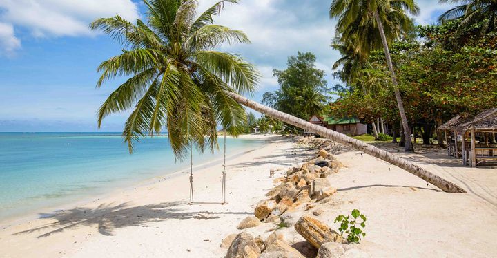 Getting there is wonderfully easy – there are dozens of flights a day from Bangkok, or you can opt for a 90-minute boat ride from Surat Thani. Most of the island’s resorts are on the east coast, which is also where you’ll find the best beaches.