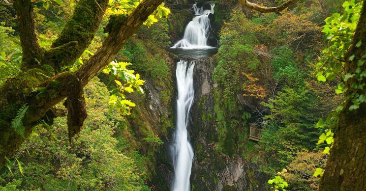 Just 19km (12 miles) away at Pontarfynach are the Devil’s Bridge Waterfalls – all rushing water, moss-clung boulders and fragrant air. No wonder this spot has been inspiring poets for centuries: in an ode penned in 1824, William Wordsworth described this as the ‘dread chasm, woods climbing above woods’. And the diabolical name? It dates back to a legend where an old woman outwitted the devil, who built her a bridge and then fled shamefacedly from Wales.