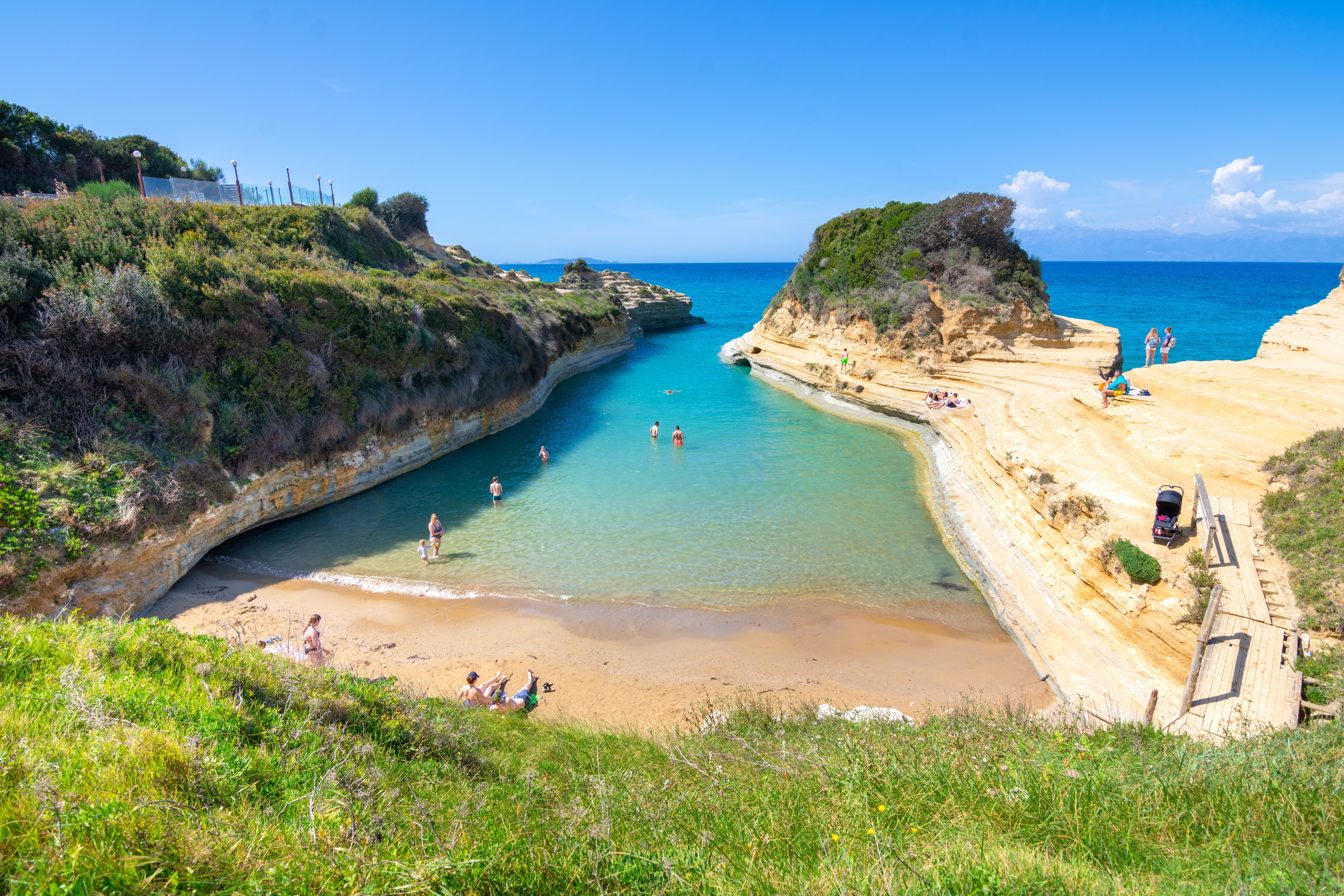 Every coast has spectacular shores, from snorkel-friendly coves in northerly Kassiopi to idyllic Gardenos down south. On the west coast, the crystal waters of cliff-backed Ermones Beach are popular with swimmers.