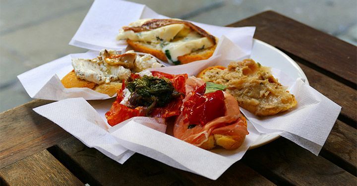 Dishes vary by bar and by what looked freshest at the market that morning, but expect plenty of baccala(salt cod) and polpette di carne (fried meatballs), plus tuna, sardines, swordfish and crostini with just about every topping that can be piled onto a piece of toast.
