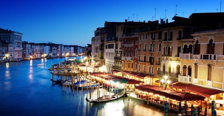 After a busy afternoon, it’s time to say farewell in style. Start with a bellini in Harry’s Bar, the hangout where the cocktail was famously invented, and frequented by the likes of Ernest Hemingway, Orson Welles and Alfred Hitchcock.