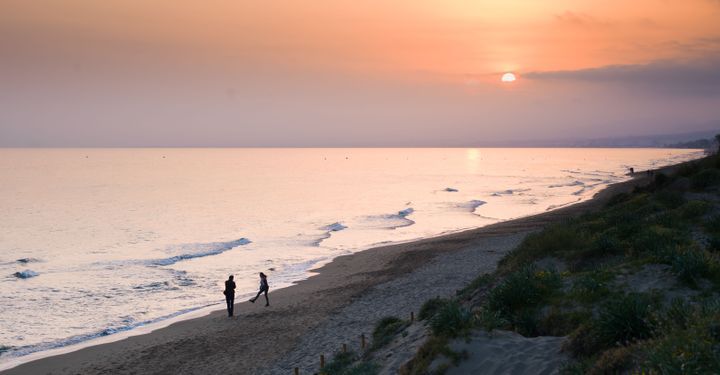 Even though this wonderfully wild beach is only some two and a half miles from Cabopino Marina, you’d never know it. The sand is fine and golden and there’s nothing but small dunes and a low-key residential development behind the beach.