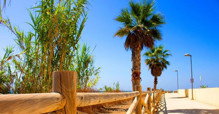 Just behind the Paseo Maritimo seafront promenade, close to the Old Town, the shallow waters at these two small bays make them ideal for children. The soft sand is great for sandcastles and there’s a children’s play area with a slide. You’re also very close to the marina if the grown-ups fancy jet skiing or paddle boarding.