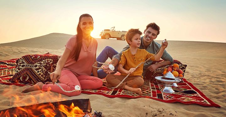 Closer to the city, there are a range of desert day trips and overnight stays to consider. At the Arabian Village, you can experience traditional Emirati life with all the modern comforts. Days here can be spent tackling the sands – dune bashing, sand boarding and camel rides are all popular choices. At night, the village comes to life with live Arabian music, belly dancers, and henna artists. Enjoy an authentic Emirati feast, then stay overnight in Bedouin-style ‘woven houses’ or a luxury ‘desert house’ – it’s an experience you won’t forget.