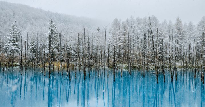 Hokkaido is the home of stunning landscapes and spirited celebrations. The beauty of the ethereal Blue Pond is only enhanced come winter, when its snow-covered trees seem to float atop the icy azure waters.