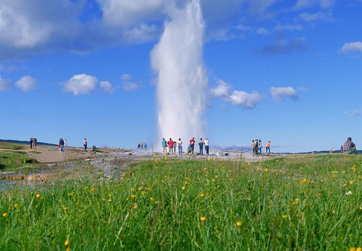Visit Thingvellir National Park first, a UNESCO World Heritage Site which hosted the world’s oldest existing parliament. Next, prepare to be amazed by the power of Gullfoss waterfall, where the torrent of the Hvita River plunges 32 metres down into the canyon below. Catch it on a good day and you might even see a rainbow arching over the falls.