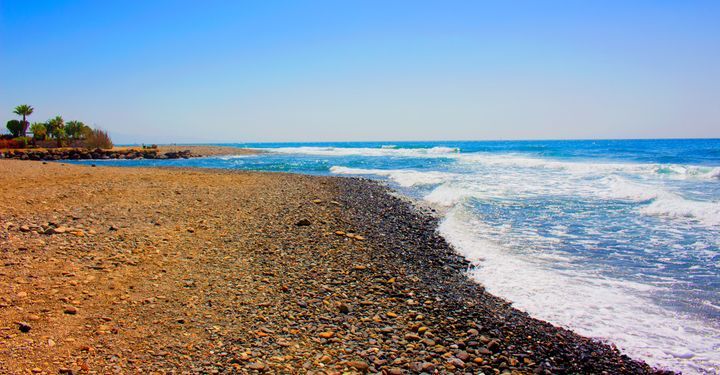 About twenty minutes’ drive west of the town centre, this lovely Blue Flag beach has nearly a mile of dark sand, with palm and eucalyptus trees on the Paseo Maritimo promenade behind.