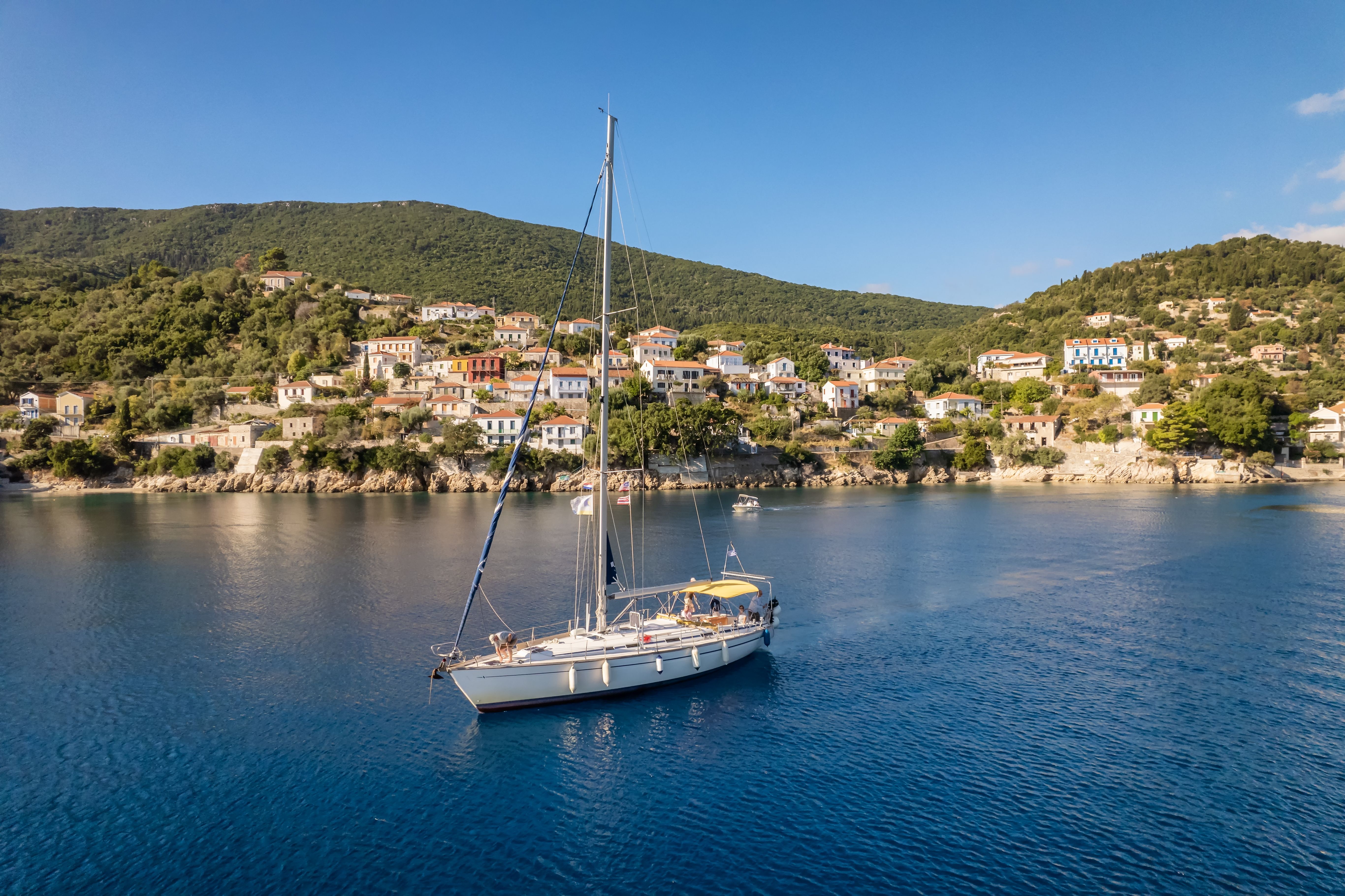 Set on a narrow fjord-like bay filled with yachts, Vathy is the island’s main village and the ideal place to enjoy a late seafood lunch by the harbour before sailing home.