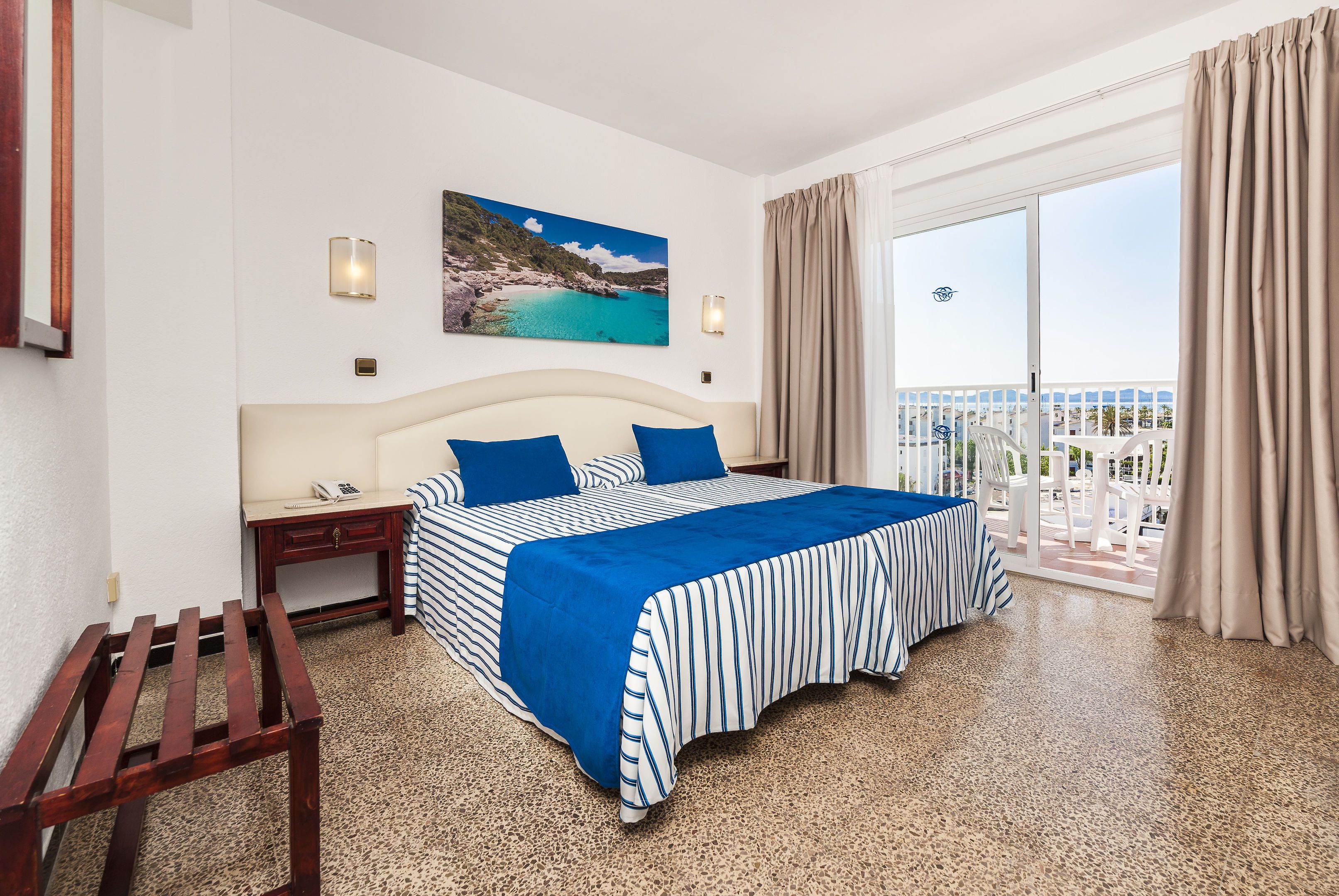 This good-value beach hotel enjoys a central location in the heart of the magnificent resort of Alcudia. The hotel is separated from the kilometre long sandy beach by just a road. It takes just a few minutes on foot to reach the shops, cafés, bars and restaurants, as well as the popular nightclub, Magic. Public transport departs for the centre from a stop approximately 100 m from the hotel.