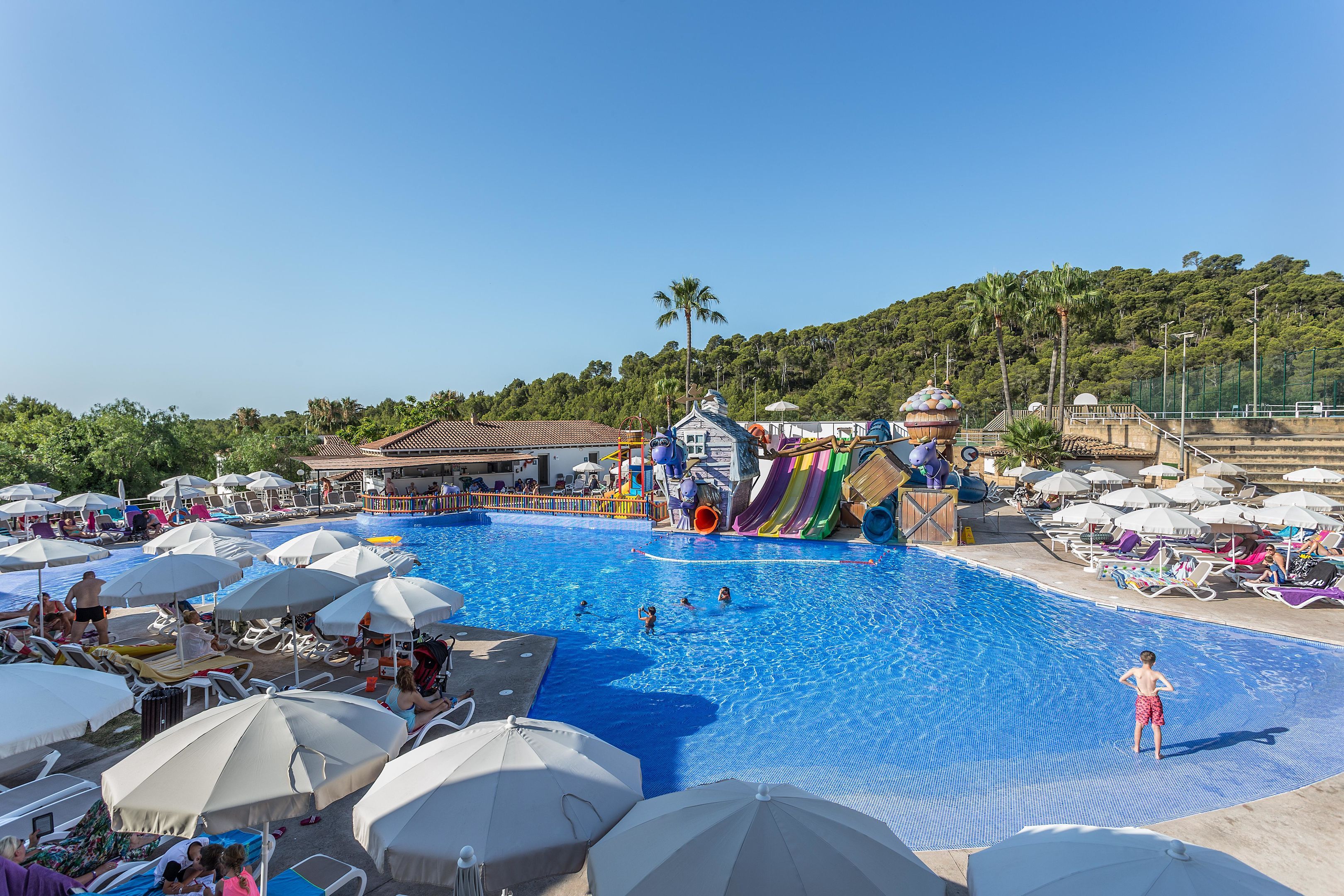 This friendly hotel is situated in a wonderful pine wood, on a hillside on the outskirts of Paguera. Only a stone's throw away is a fine-sand beach. The centre of town offers plenty of shopping and entertainment venues and is only 500 metres away.