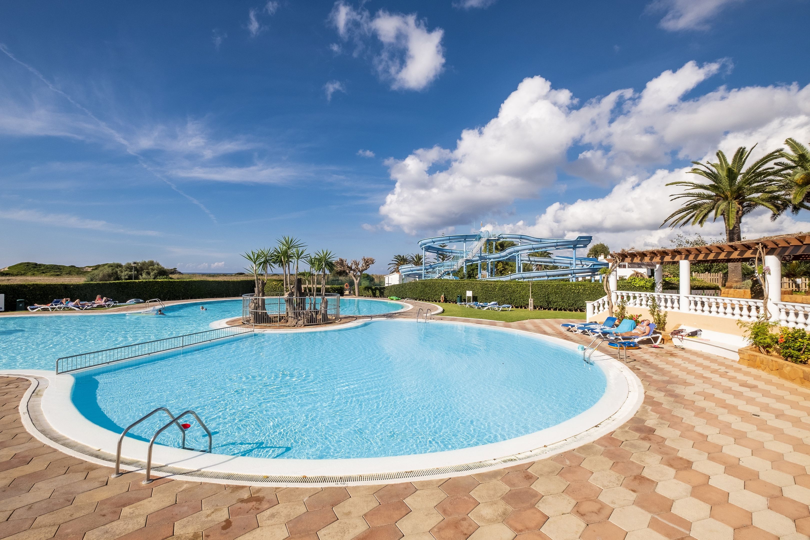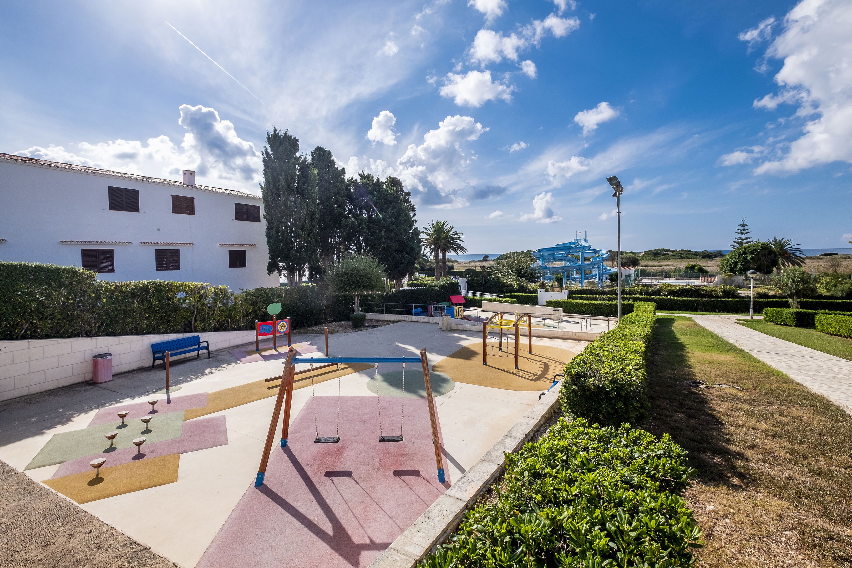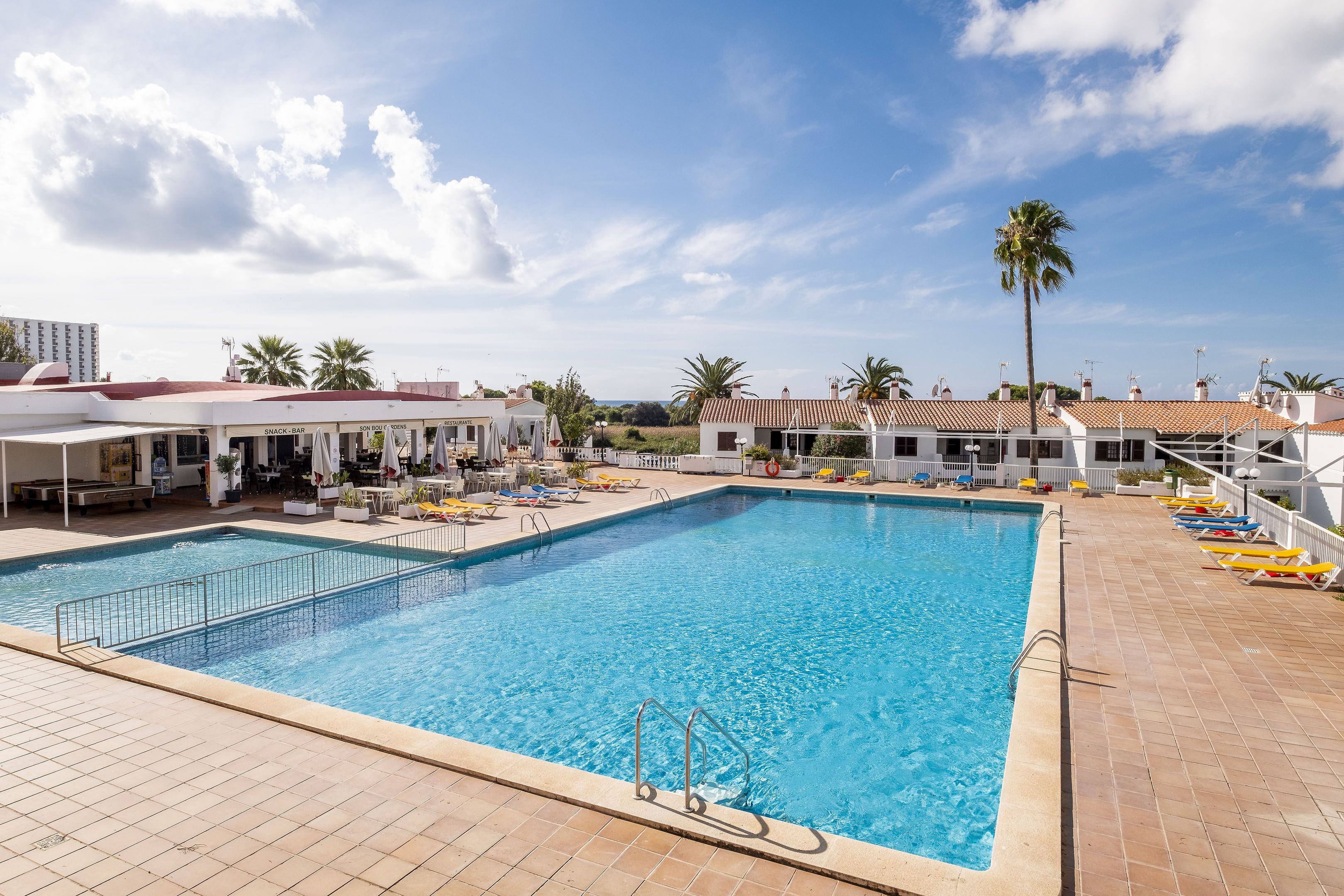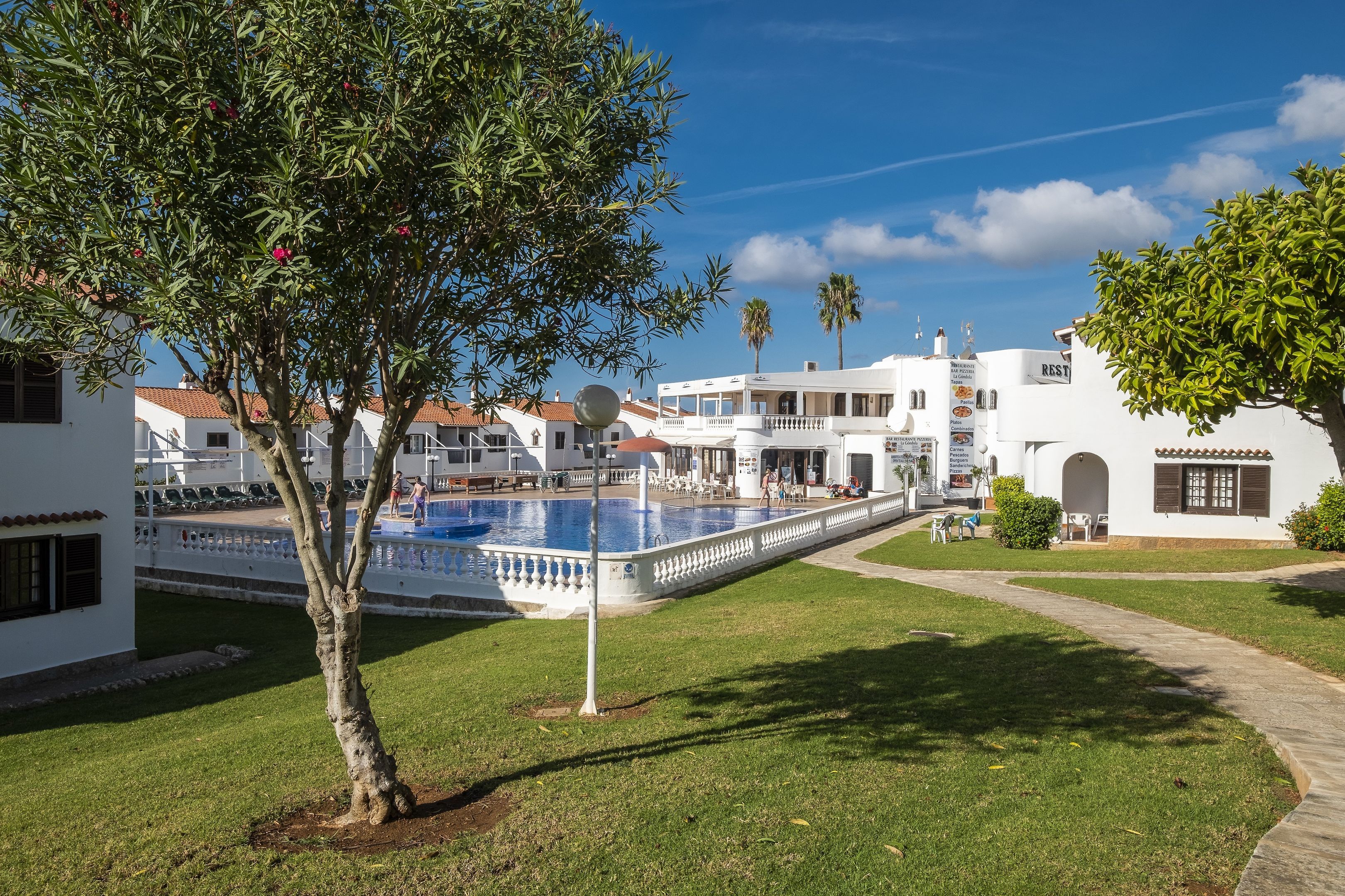 This complex overlooks the long beach of Son Bou and is close to a nature reserve. Guests will find public transport, as well as scores of restaurants, lively bars, and shops all within walking distance of the apartment complex. It is 15 km to Menorca airport.