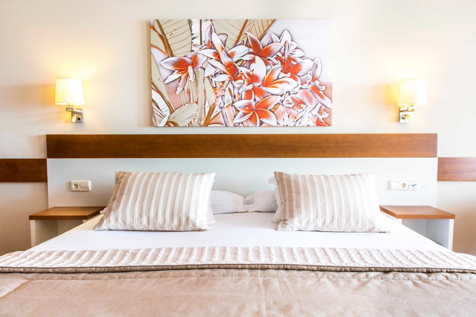 Air conditioning and a fan ensure that rooms maintain comfortable temperatures . Guests can enjoy the sea view from a balcony or terrace . Rooms have a double bed or a sofa bed . Separate bedrooms are available . Children's beds and extra beds can be requested for younger guests .