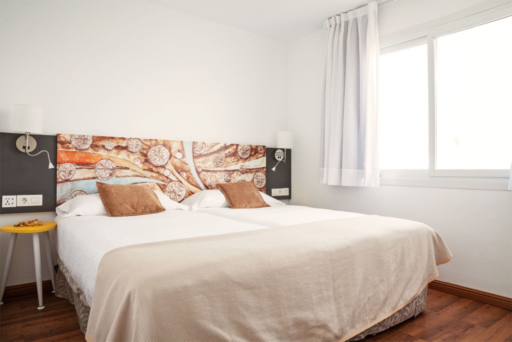 Air conditioning and central heating ensure that rooms maintain comfortable temperatures . Guests can enjoy the garden view from a balcony or terrace . The rooms have a double bed and a sofa bed . Separate bedrooms are available . Extra beds can be requested . A safe and a minibar are also available
